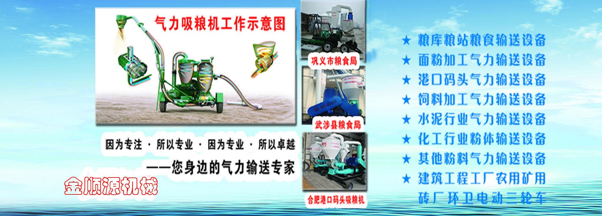河南金順源機械設備有限公司在氣力輸送設備、吸糧機、糧食輸送機領域擁有豐富的經驗成熟的工藝,公司位于河南省鞏義市永安路南段,多年來,氣力輸送設備/吸糧機_定制粉體/糧食/水泥/粉煤灰/飼料氣力輸送系統裝置公司匯集了一大批銳意進取并代表著行業水平的管理、科研精英。公司非常重視技術交流與合作,引進了發達的先進技術和工藝,在國外先進技術本土化的基礎上,……